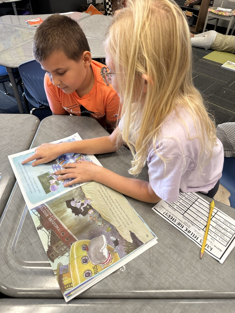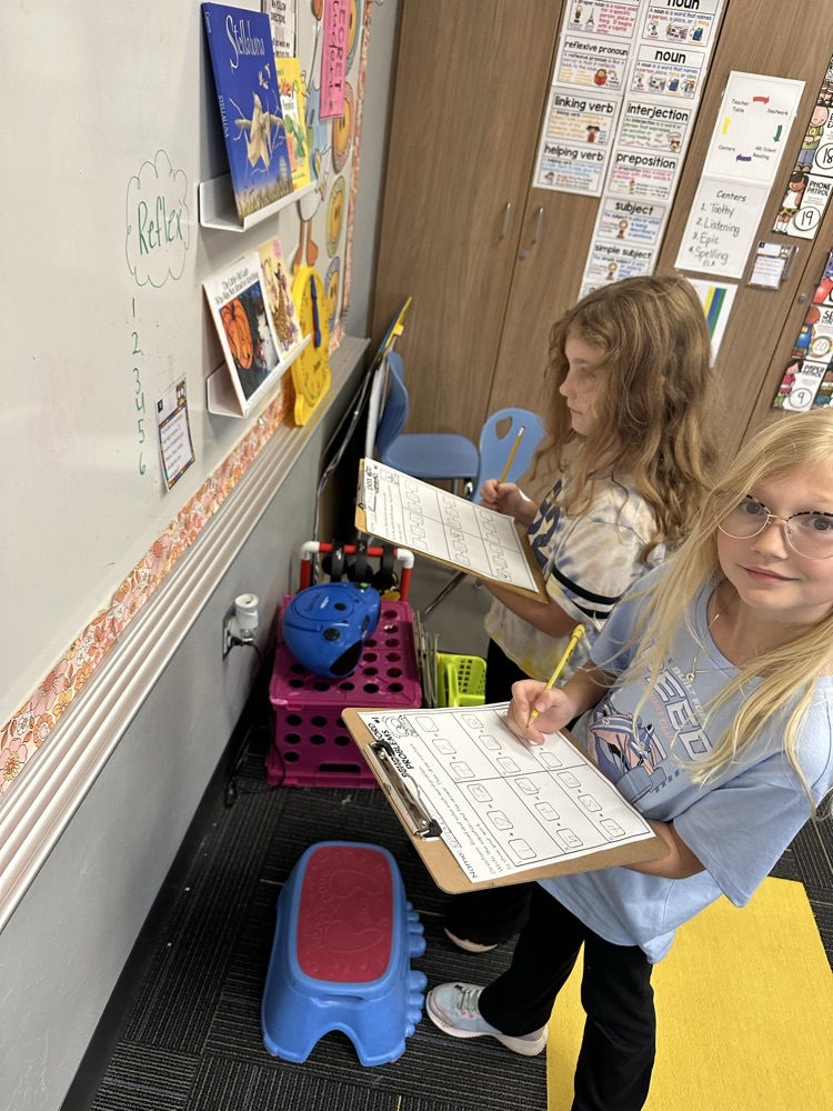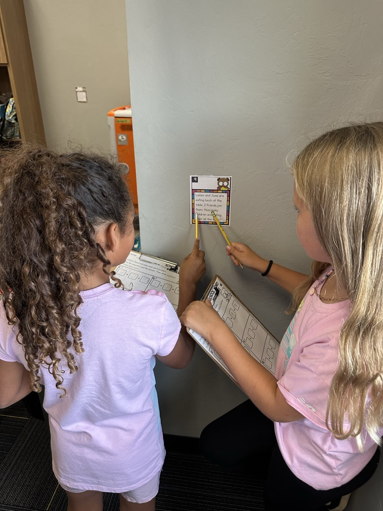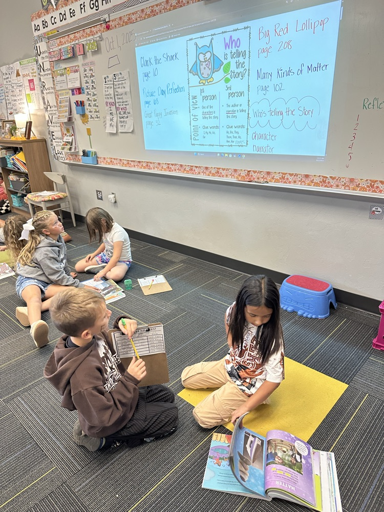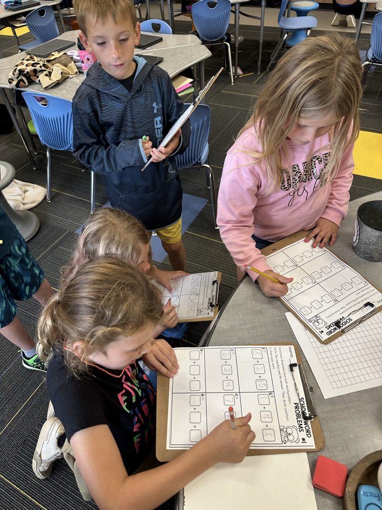 Mrs. M Garrison's class moved around the room and worked with partners to learn Point of View and Number Line sentences.