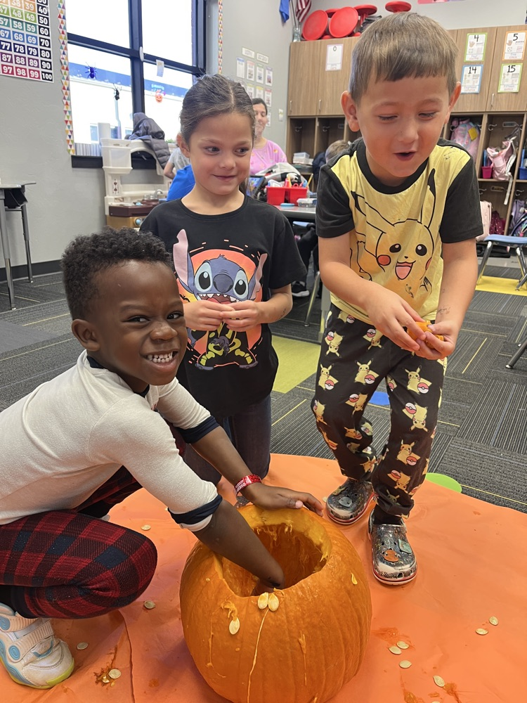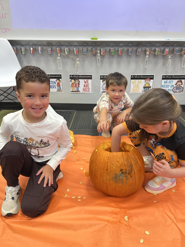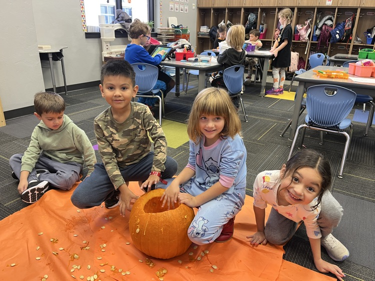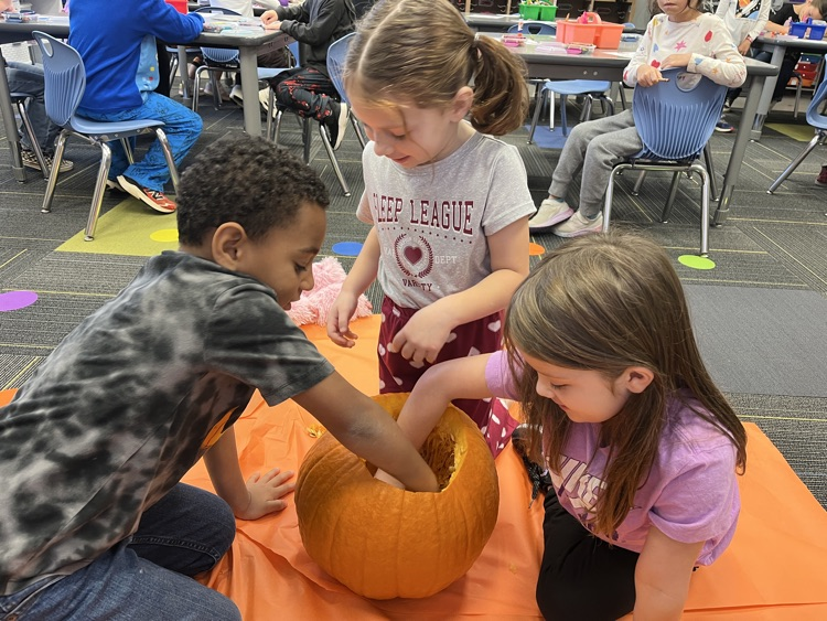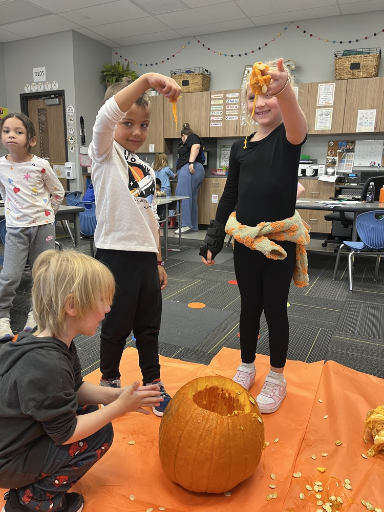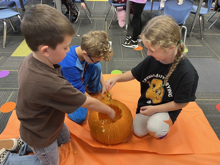 Mrs. Egan's class explored the parts of a pumpkin today! 🎃 🔍