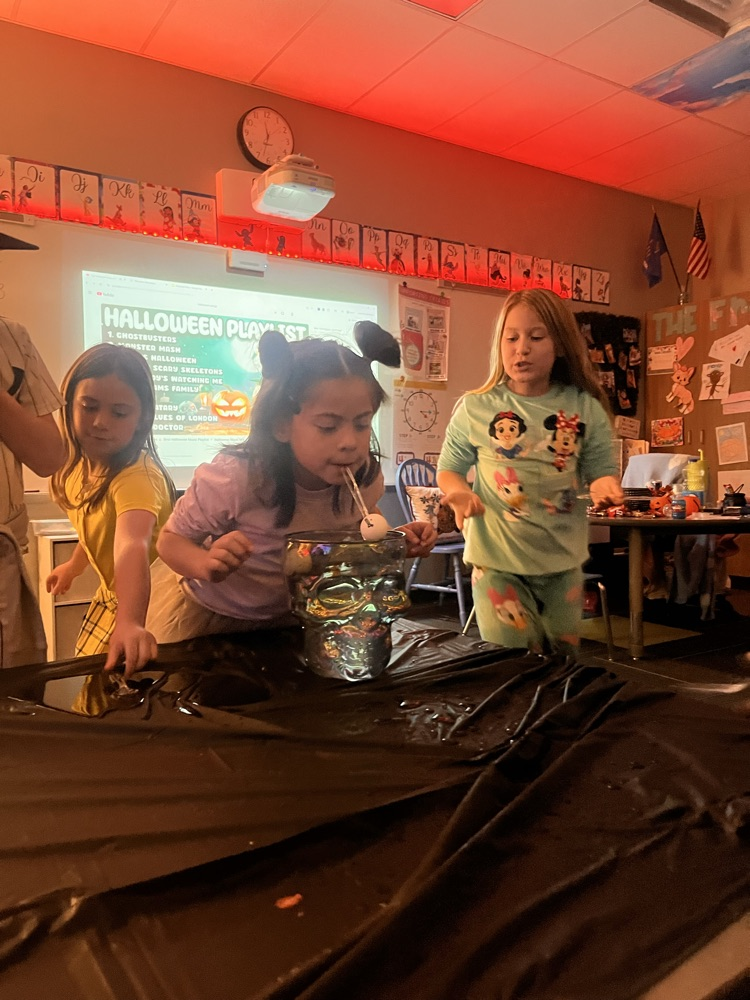 💥 Ms. C. Reyes' first graders had a blast learning a quick lesson about chemical reactions to create some Halloween fun! They mixed vinegar and baking soda to see what happens when two substances react — lots of bubbles and excitement! 🧪✨