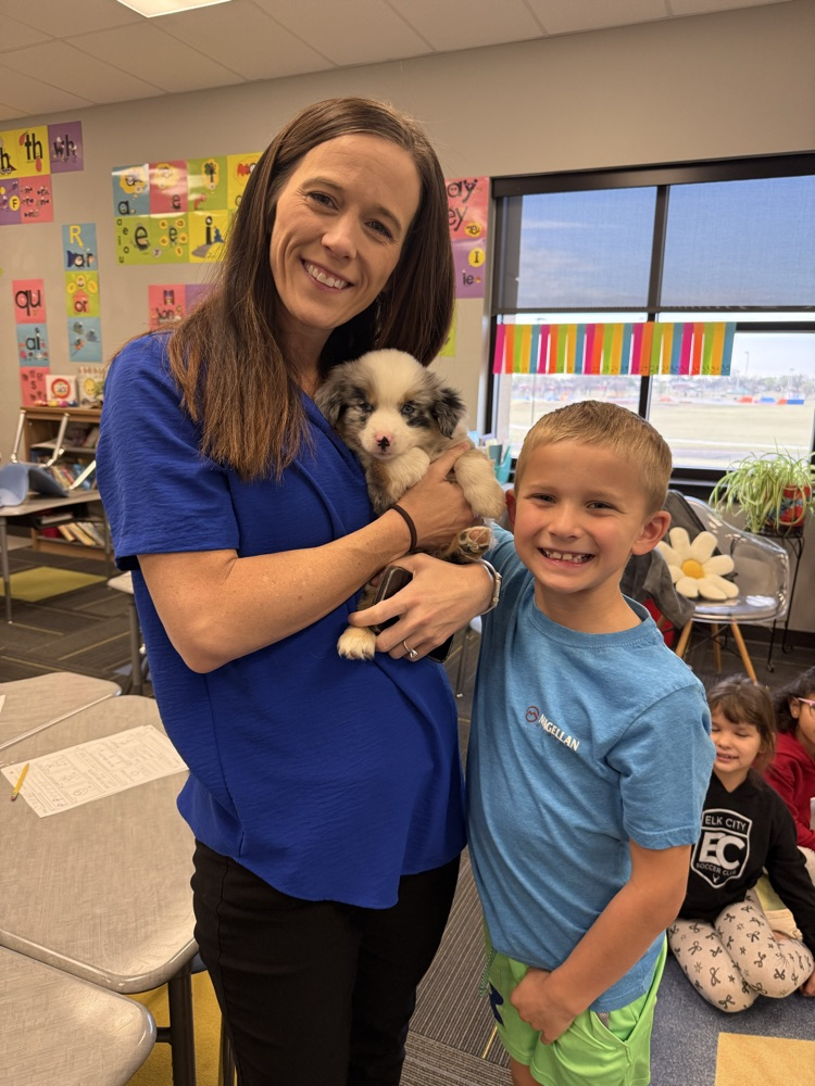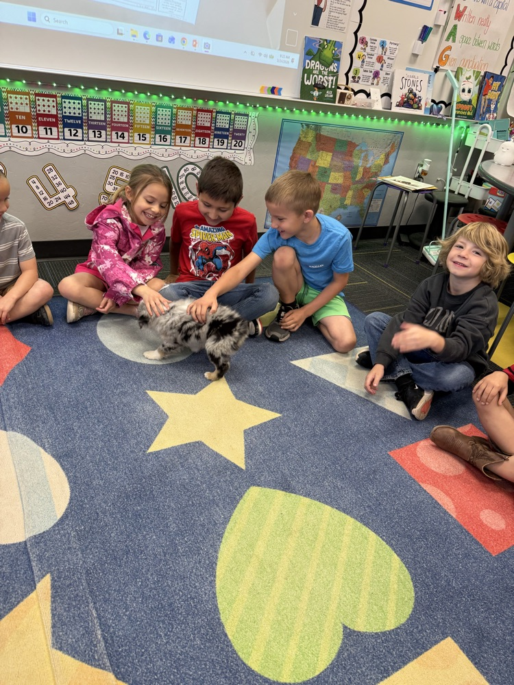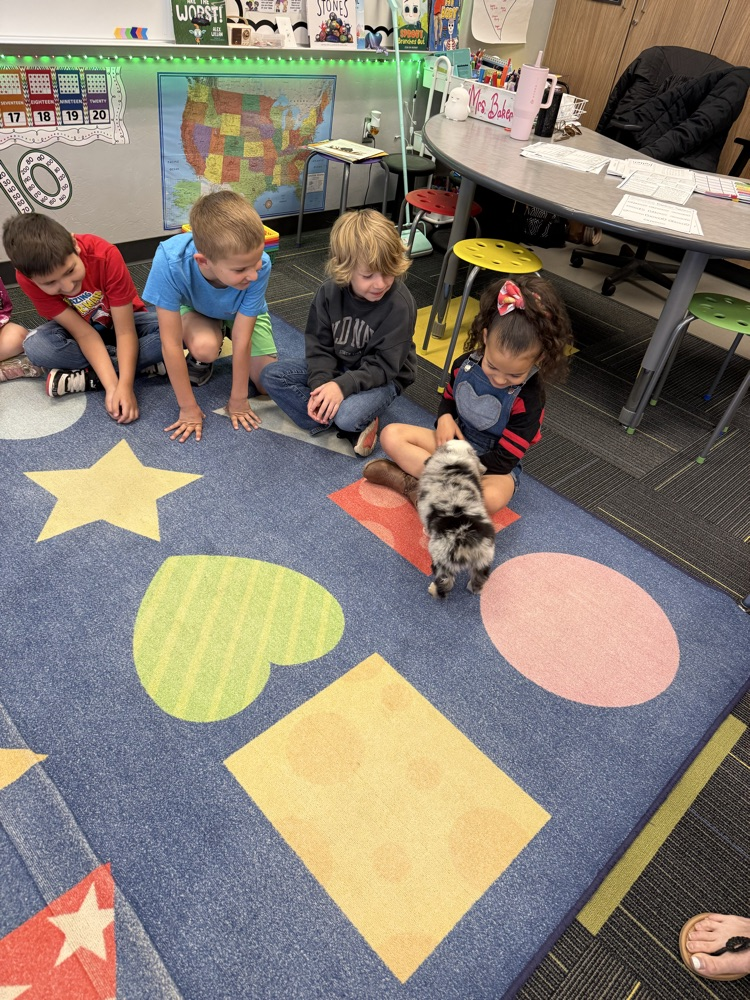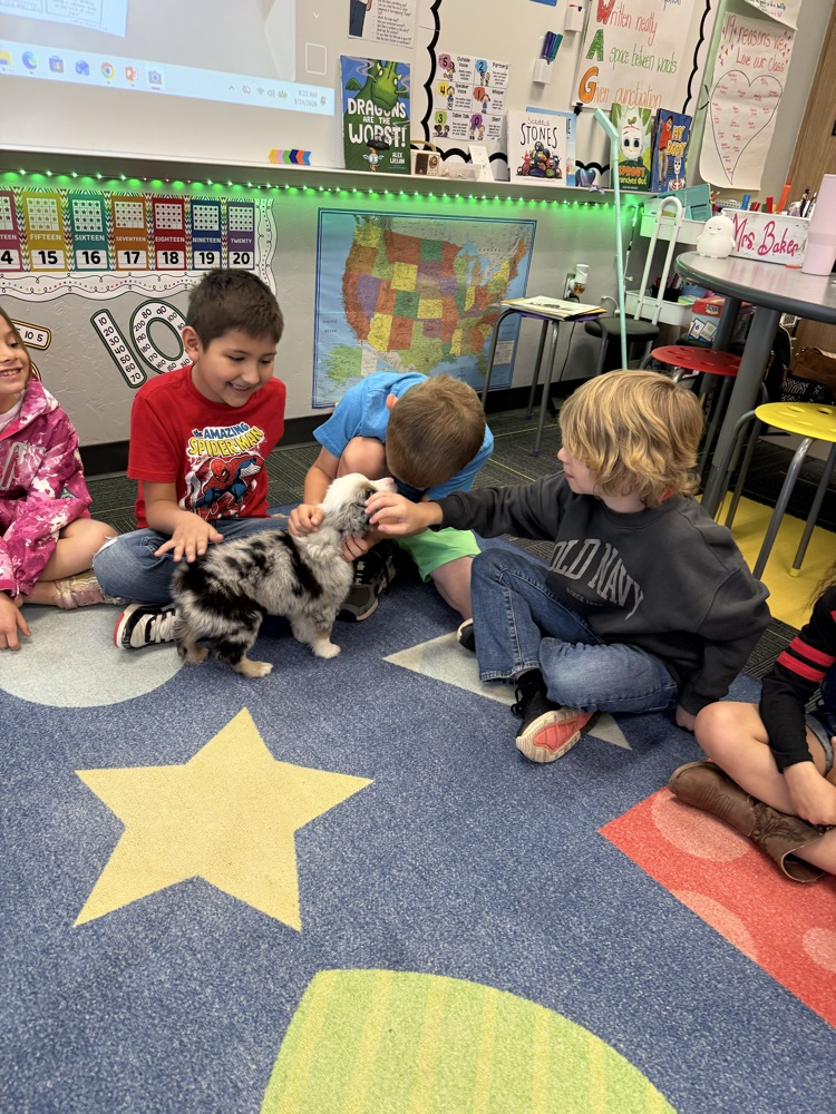 Mrs. Baker’s class had a fun surprise visitor the other morning morning! Waylon shared his new puppy, Theo with us! There were lots of giggles to start our day! 🐾🐶🐾 Thanks Jenna Redd for taking time to bring him to meet us!!